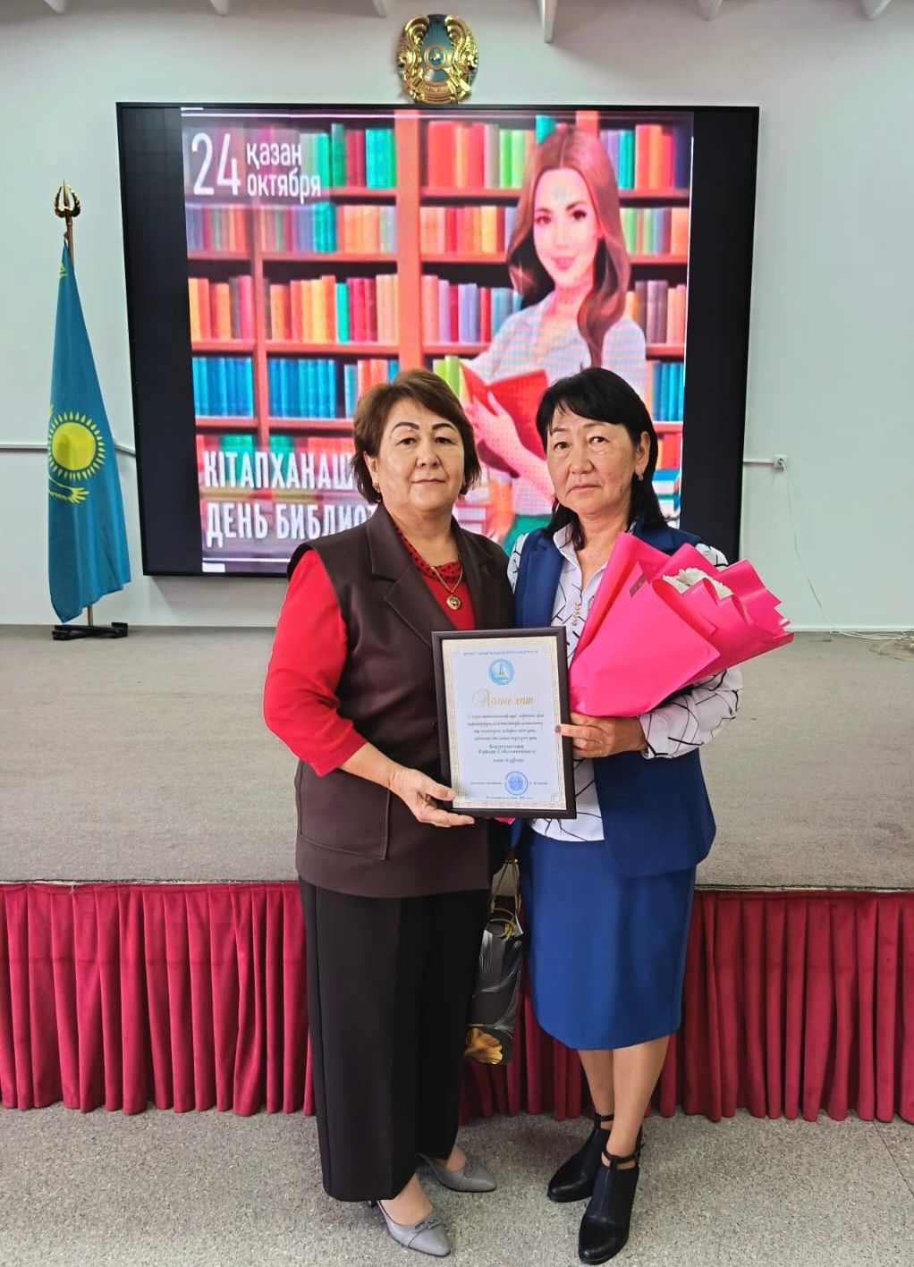 Мектебіміздің кітапханашысы Бердахметова Райхан Сейлхановна 24 қазан-Кітапханашылар күніне орай аудан әкімінің Алғыс хатымен марапатталды.