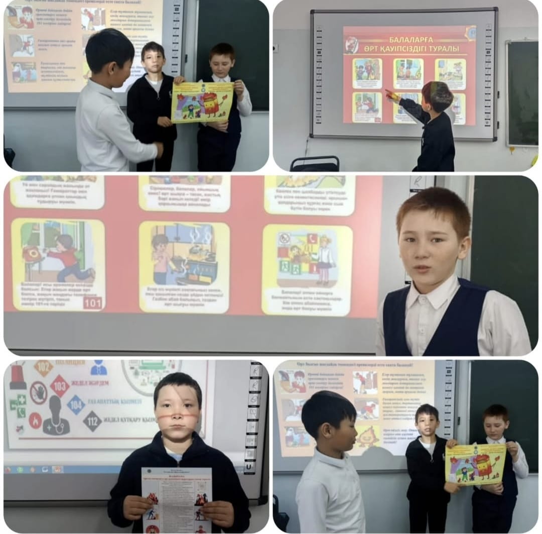 14 ақпан күні өрт қауіпсіздігі туралы түсіндіру жұмыстары жүргізілді, барлық сыныптарға сынып сағаттары өтілді. Үйдегі электр құралдарымен жұмыс жасауда абай болу, телефонды зарядтайтын құрылғыға қосып қарамау, сіріңкемен ойнамау, жоғары сынып оқушыларына үйде от жақпау сияқты алдын алу шаралары түсіндірілді.