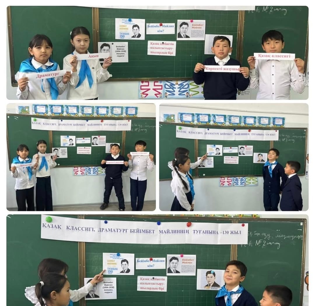 А.С.Пушкин атындағы МДШО бар орта мектебінде 29-қараша күні 4-сынып оқушыларымен қазақ классигі, драматург Бейімбет Майлиннің туғанына 130 жыл толуына орай әдеби кеш өткізілді. Мақсаты: оқушыларға Б.Майлиннің кім екенін, оның шығармаларын таныстыру, ұлы тұлғаны ұмытпауға тәрбиелеу. Оқушылар Б.Майлиннің өмірбаянымен танысты, өлеңдерін жатқа айтты. Сынып жетекшісі Ж.Б.Исаханова жазушының шығармаларымен таныстырды.