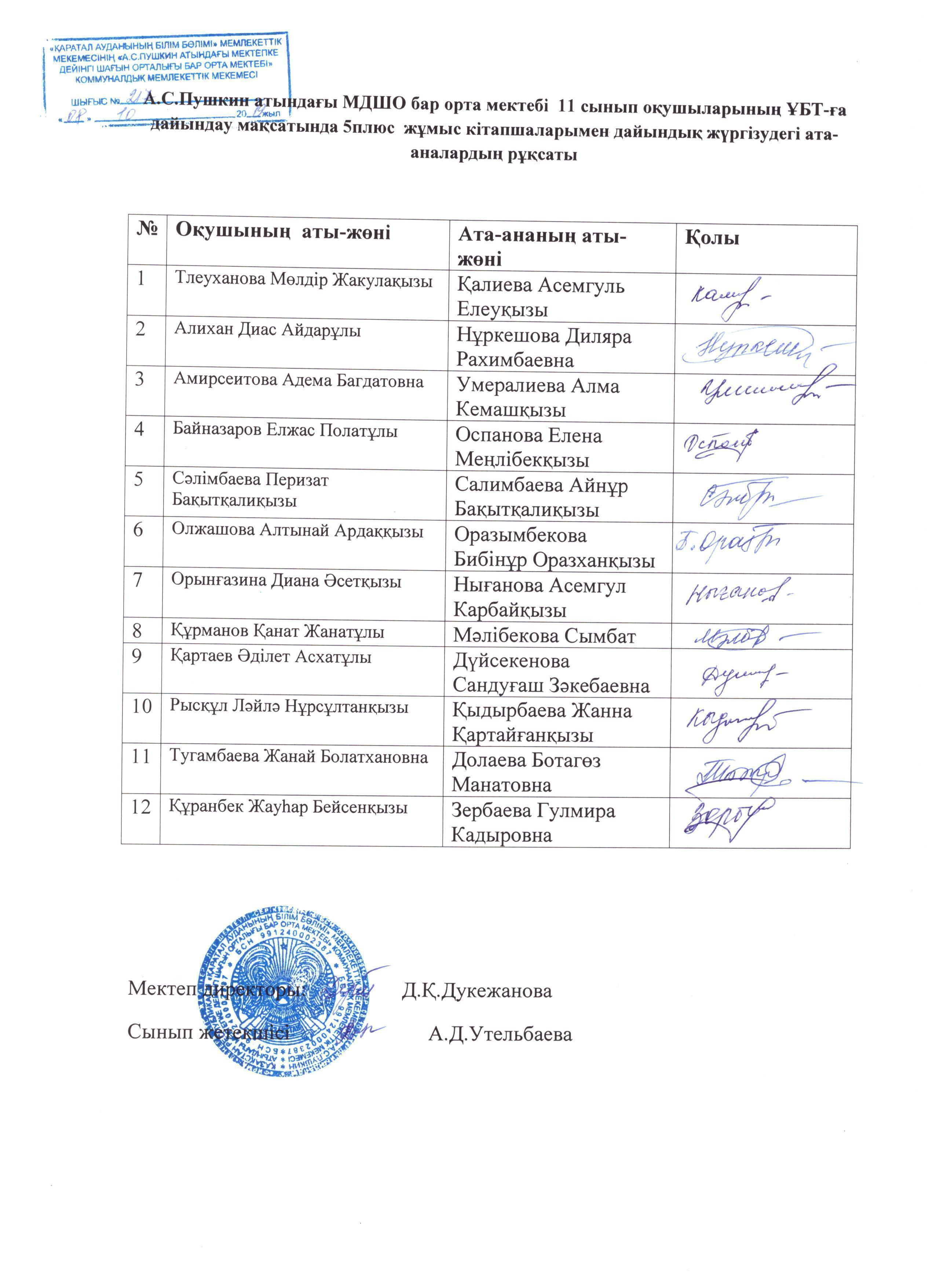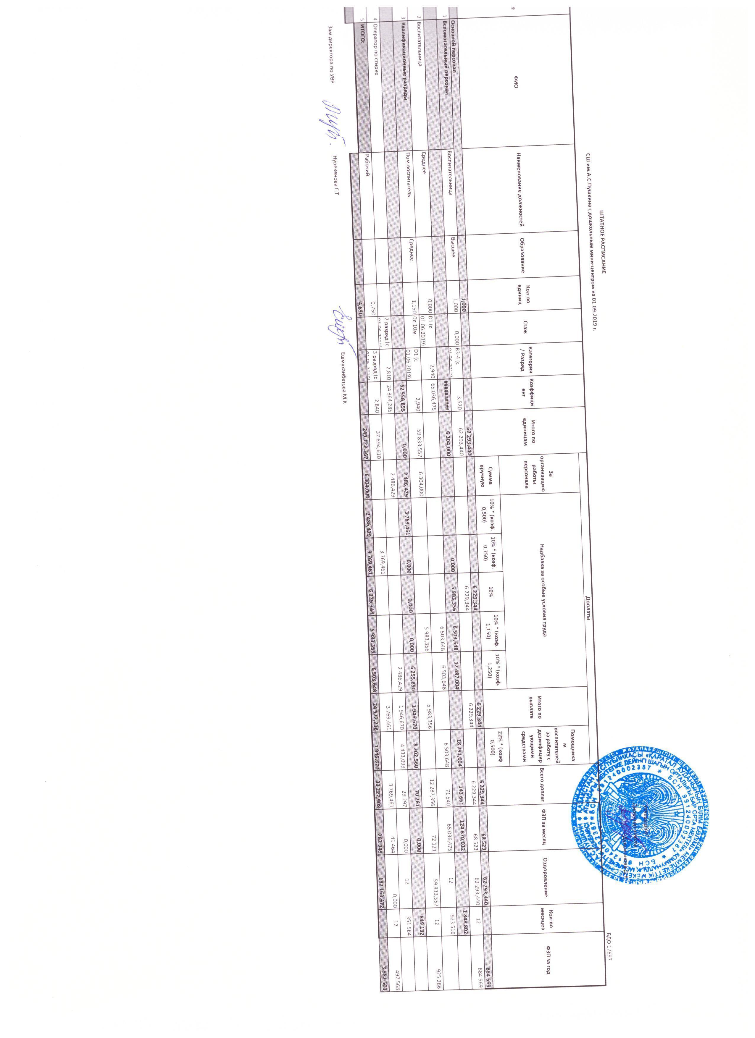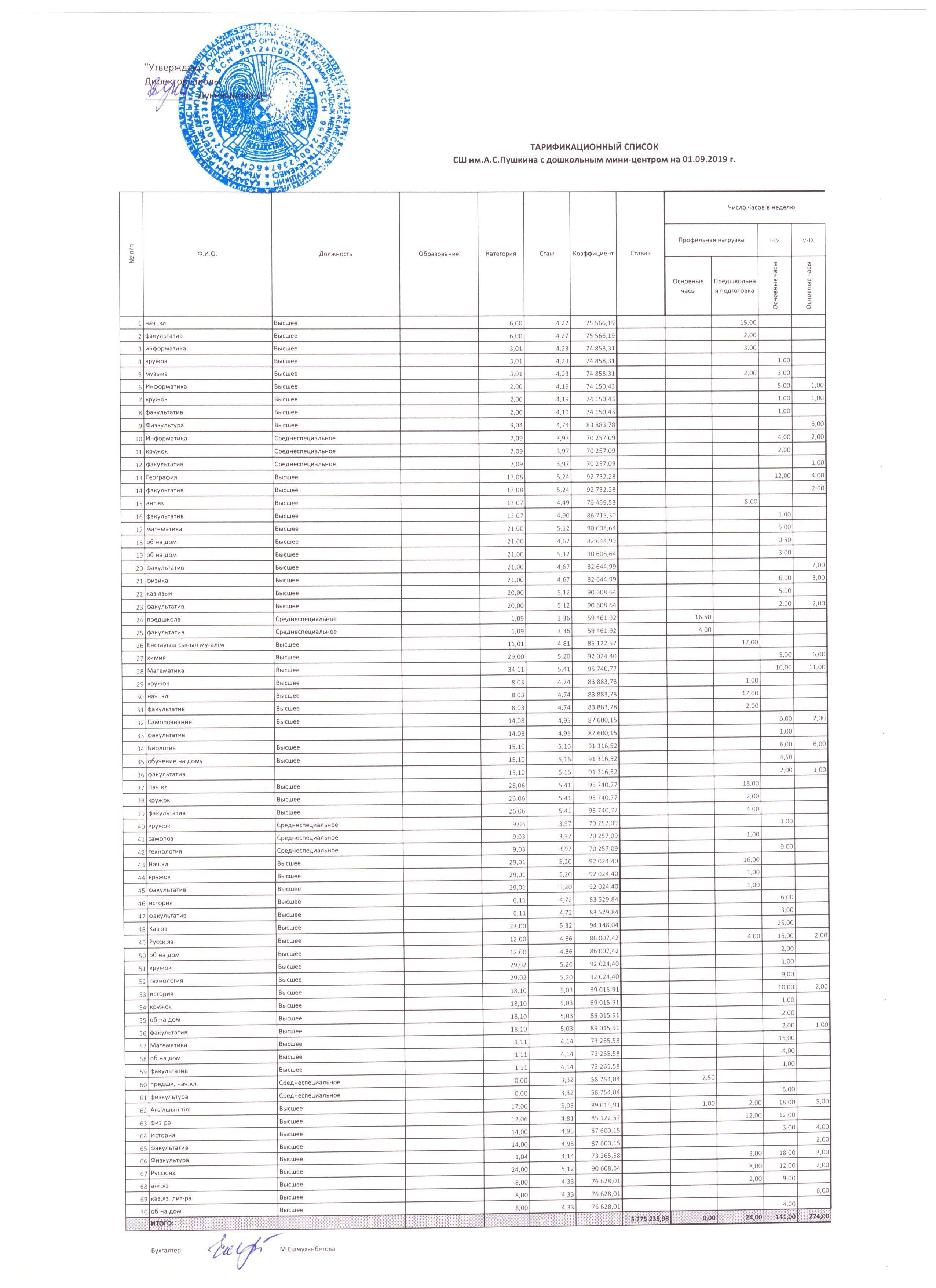 А.С.Пушкин атындағы МДШО бар орта мектебінің тарификациясы 2019-2020 оқу жылы]]>